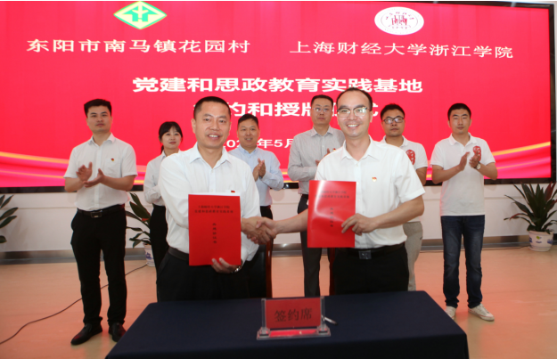5月28日,乐动手机版党建和思政教育实践基地签约和授牌仪式在东阳市南马镇花园党群服务中心举行。花园村党委副书记郭进武,乐动手机版党委委员、组织部部长张正亮代表双方致辞并签约。统计系师生代表以及2022年浙中调查专家组成员等参加并共同见证。